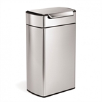 Deze Simplehuman afvalbak in zilverkleur opent eenvoudig met een lichte aanraking dankzij de speciale greep. Handig wanneer u uw handen vol heeft tijdens het opruimen. De deksel kan open blijven staan, zodat u zonder haast afval kunt weggooien. Door het slanke design past deze prullenbak moeiteloos in kleinere ruimtes. De vingerafdrukvrije coating zorgt ervoor dat de afvalbak er langdurig netjes en glanzend uit blijft zien. Deze afvalbak heeft een inhoud van 40 liter en een afmeting van 29 x 41 x 71 cm (LxBxH). Gebruik Simplehuman code M vuilniszakken voor een perfecte pasvorm. Dankzij de uitneembare binnenemmer en afneembare deksel verwisselt u de zak snel, met handige parkeerstand voor extra gemak.
